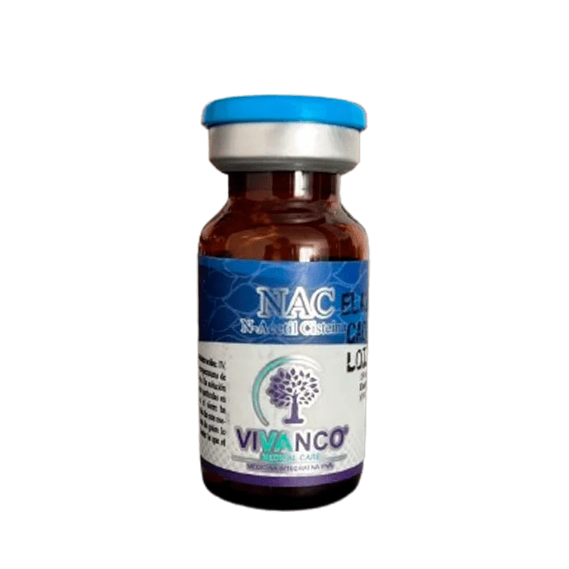 – La N-Acetil-L-Cisteína (NAC) es un derivado del aminoácido L-cisteína utilizado dentro de protocolos de medicina funcional e integrativa por su participación en procesos bioquímicos esenciales. En su presentación intravenosa, se integra como parte de esquemas terapéuticos personalizados, siempre bajo supervisión médica.